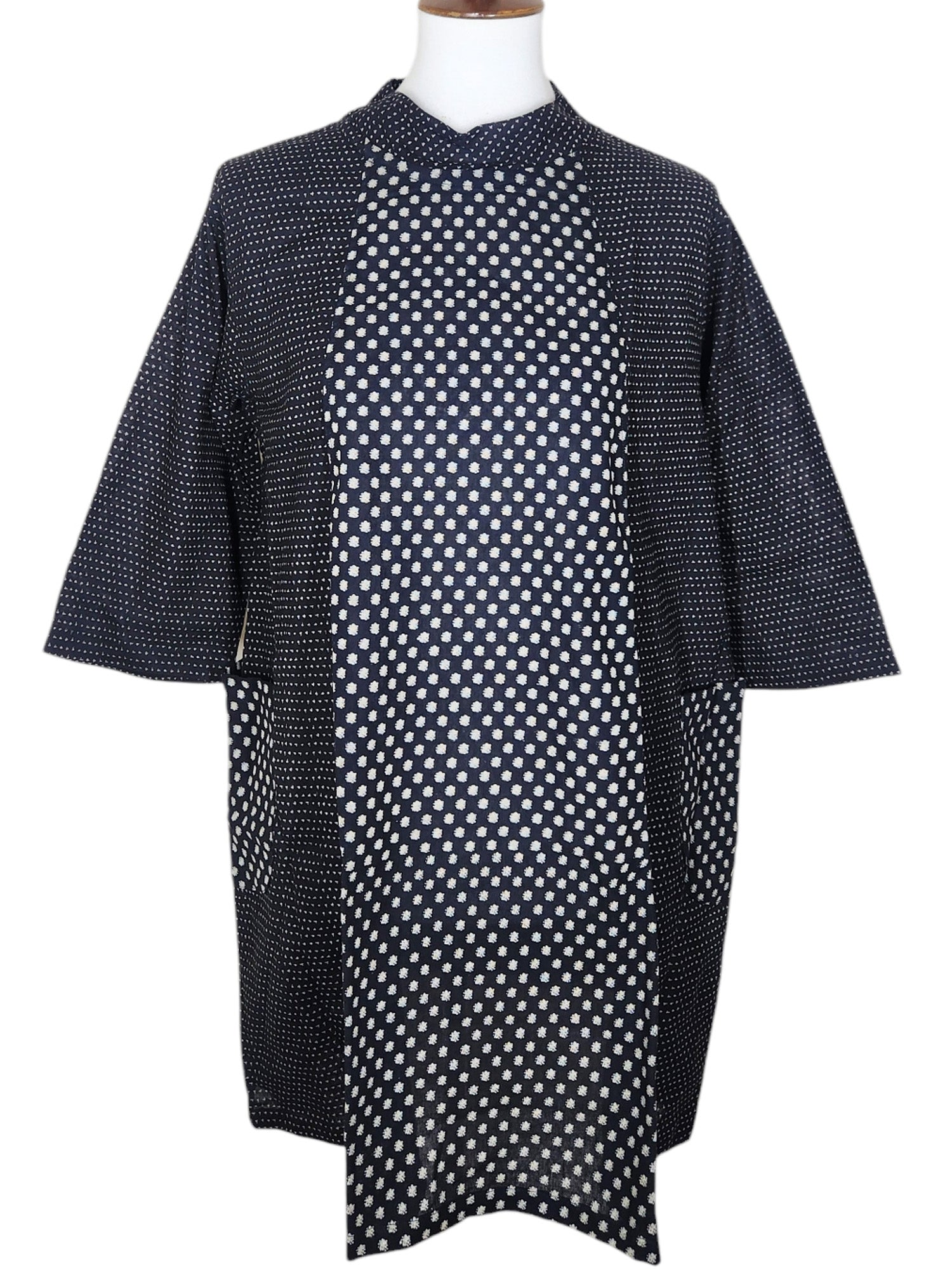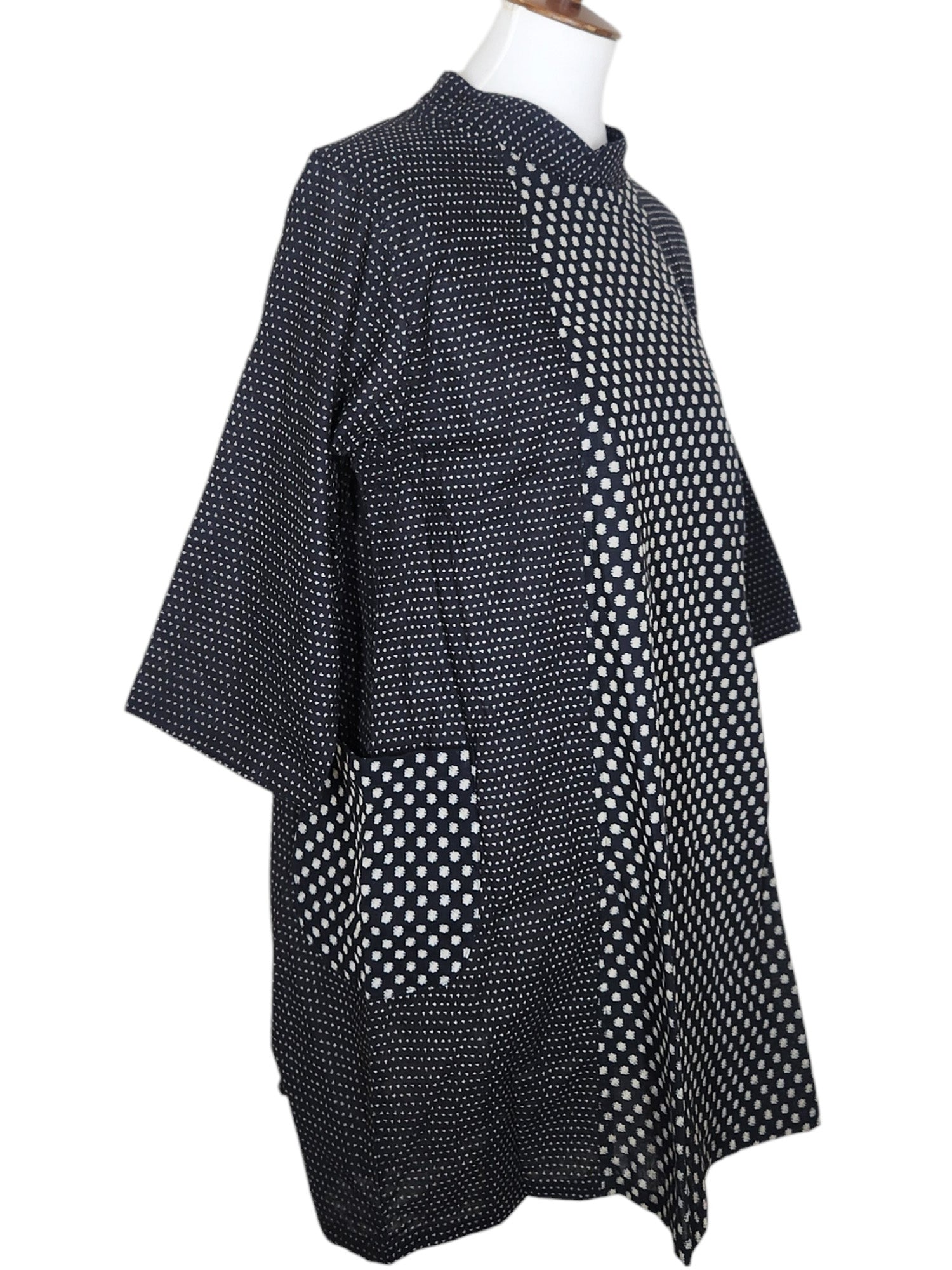 Mock Neck Tunic - Multi Dots Print - Black